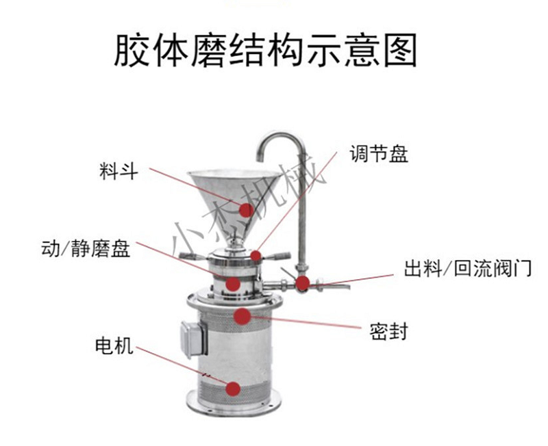 小型膠體磨是溫州小杰機械2019年全新設計的高剪切膠體磨,采用衛(wèi)生級不銹鋼制造。適用于食品飲料、制藥化工、